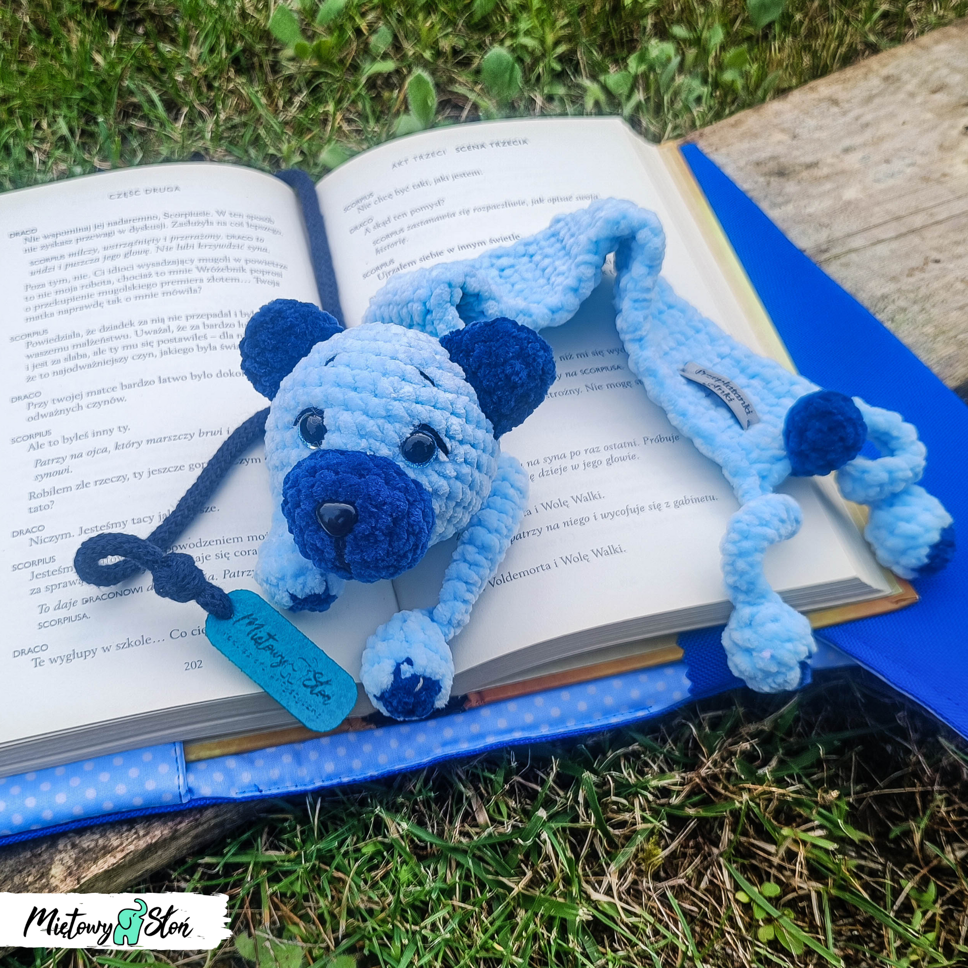 W komplecie z otulaczem - ręcznie robiona na szydełku włóczkowa zakładka - MIŚ.