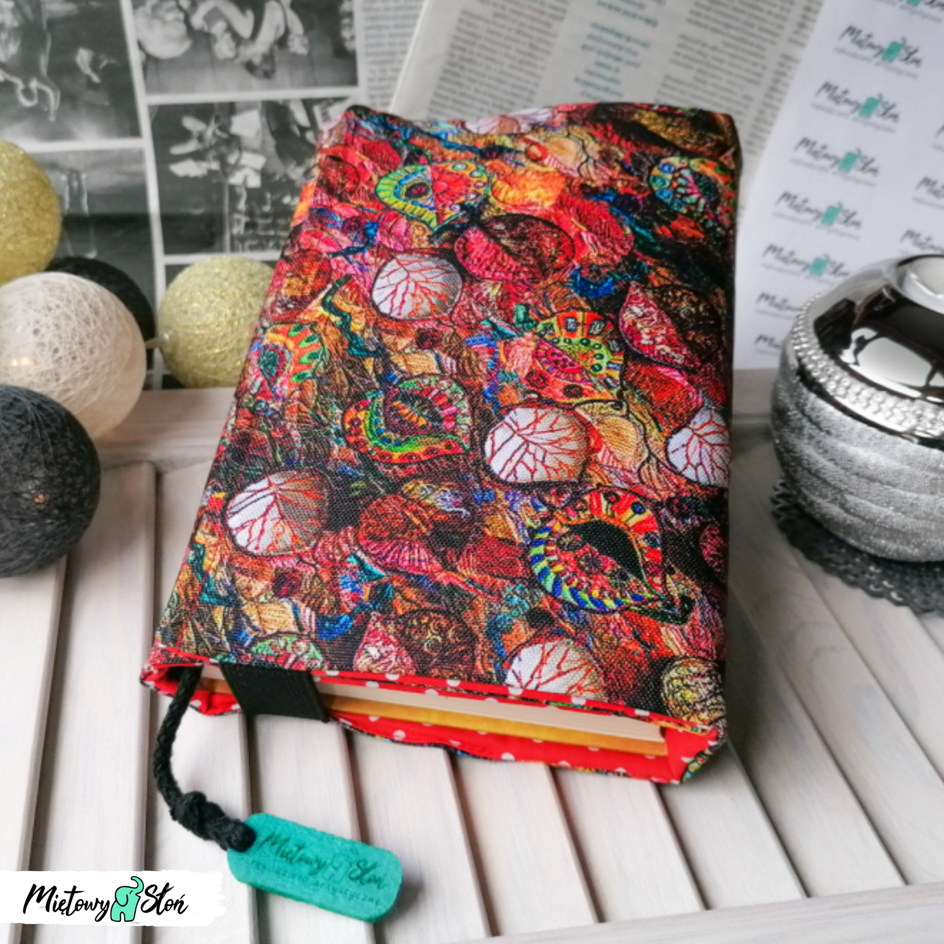 Otulacz / etui na książkę z tkaniny wodoodpornej - wzór JESIENNE LIŚCIE.