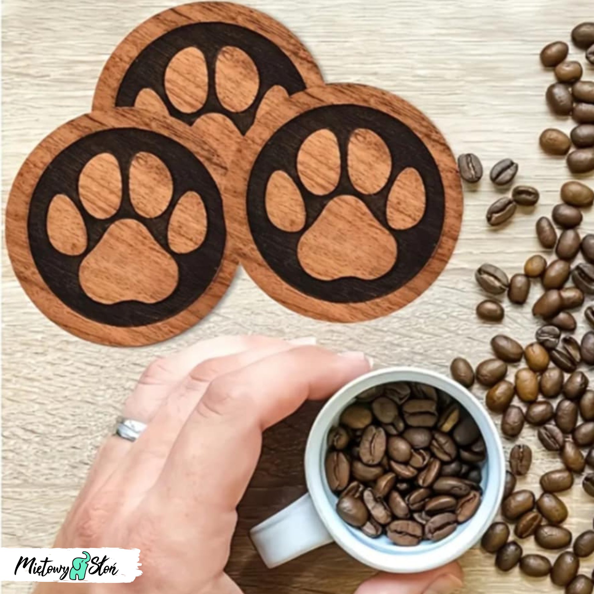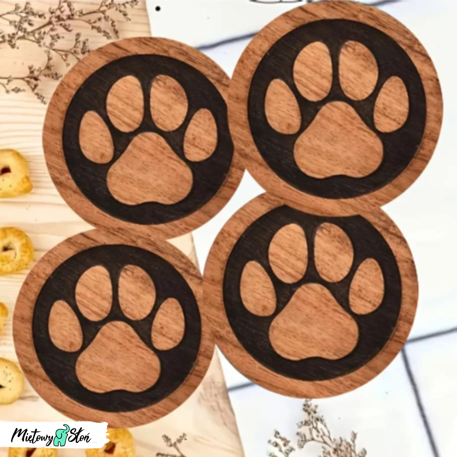 Drewniane podkładki pod kubek - wzór ŁAPKI.