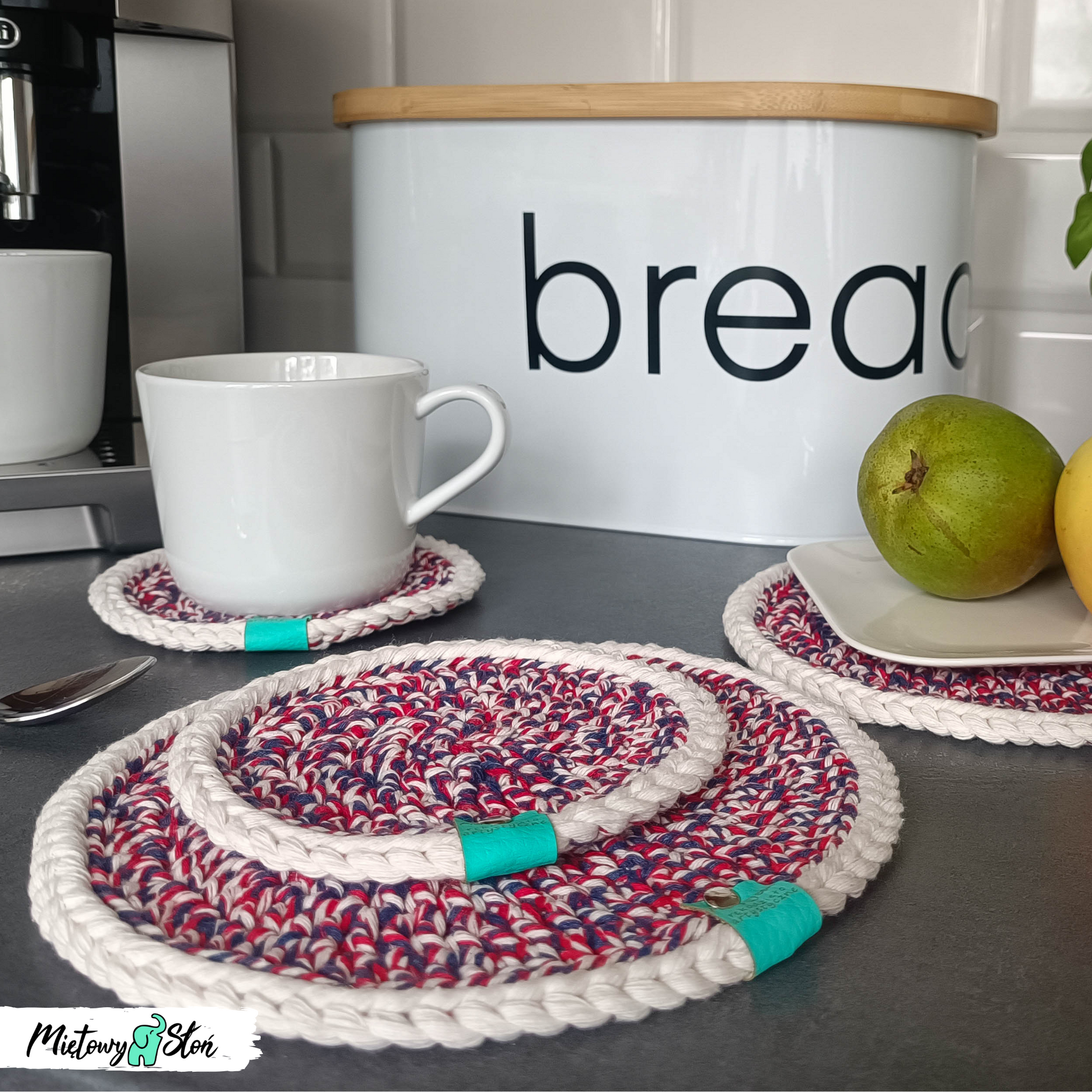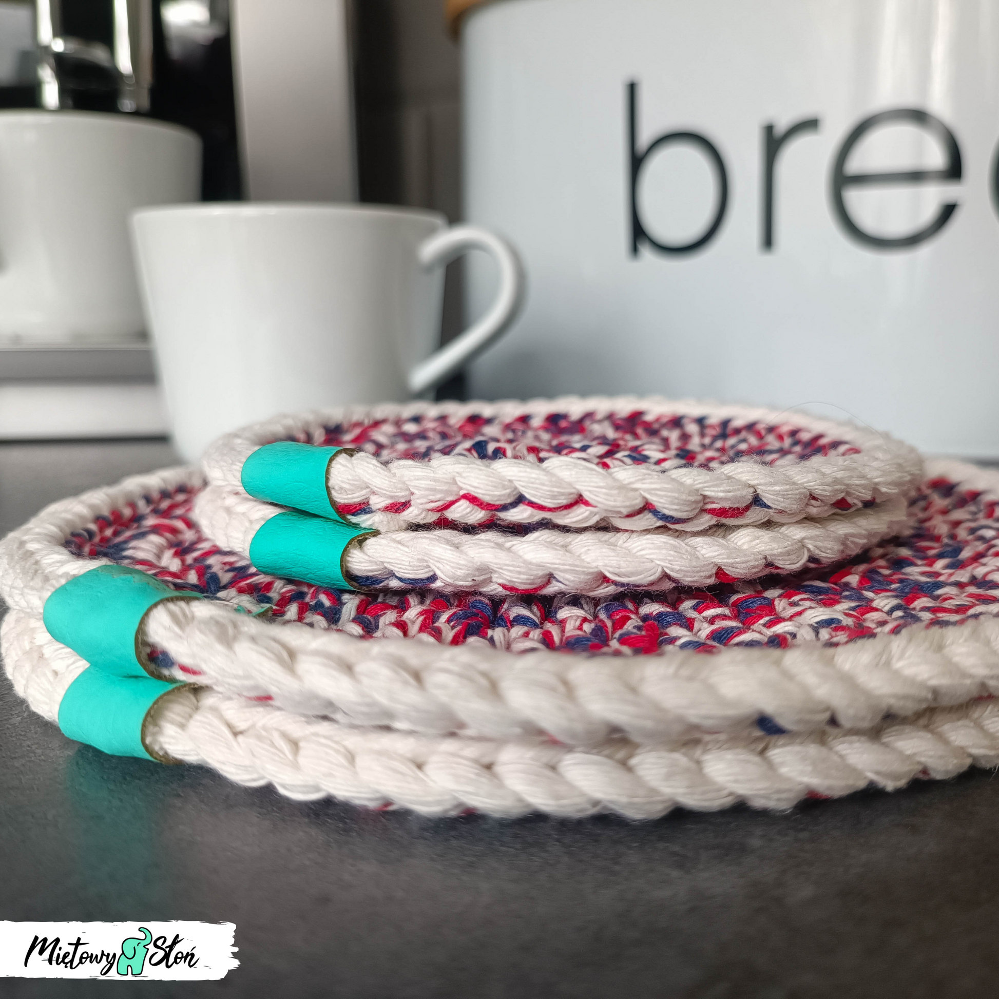 Podkładki ze sznurka bawełnianego ~ komplet 2+2 ~ tricolor