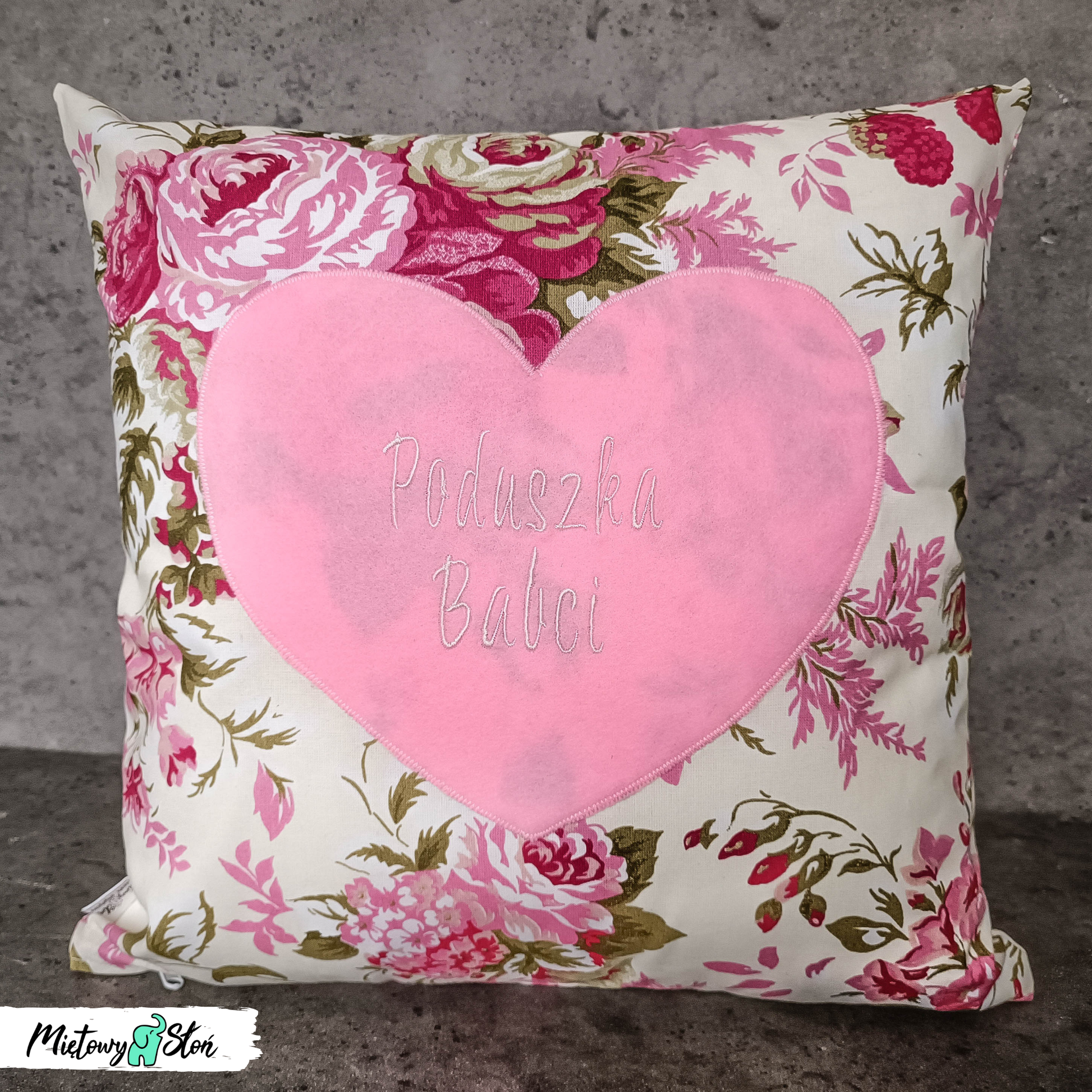 Poszewka zdejmowana - zapinana na suwak. Wykonana w 100% z bawełny. Serce z miękkiego filcu akrylowego z haftowanym napisem "Poduszka Babci".