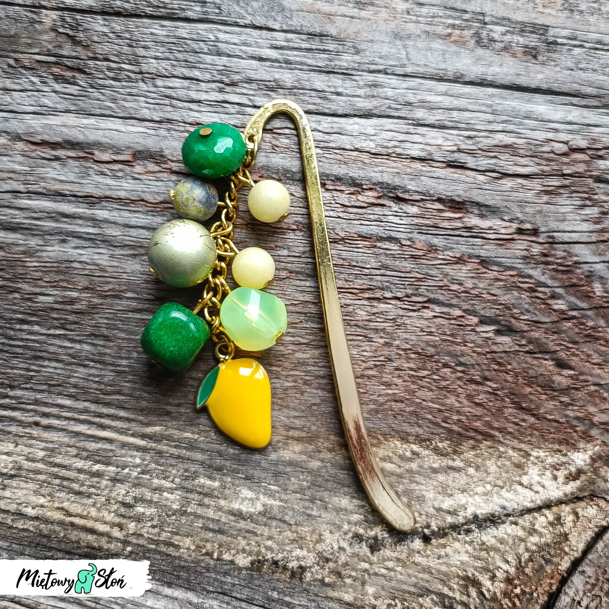 Metalowa zakładka do książki z kolorowymi koralikami i zawieszką CYTRYNKĄ.