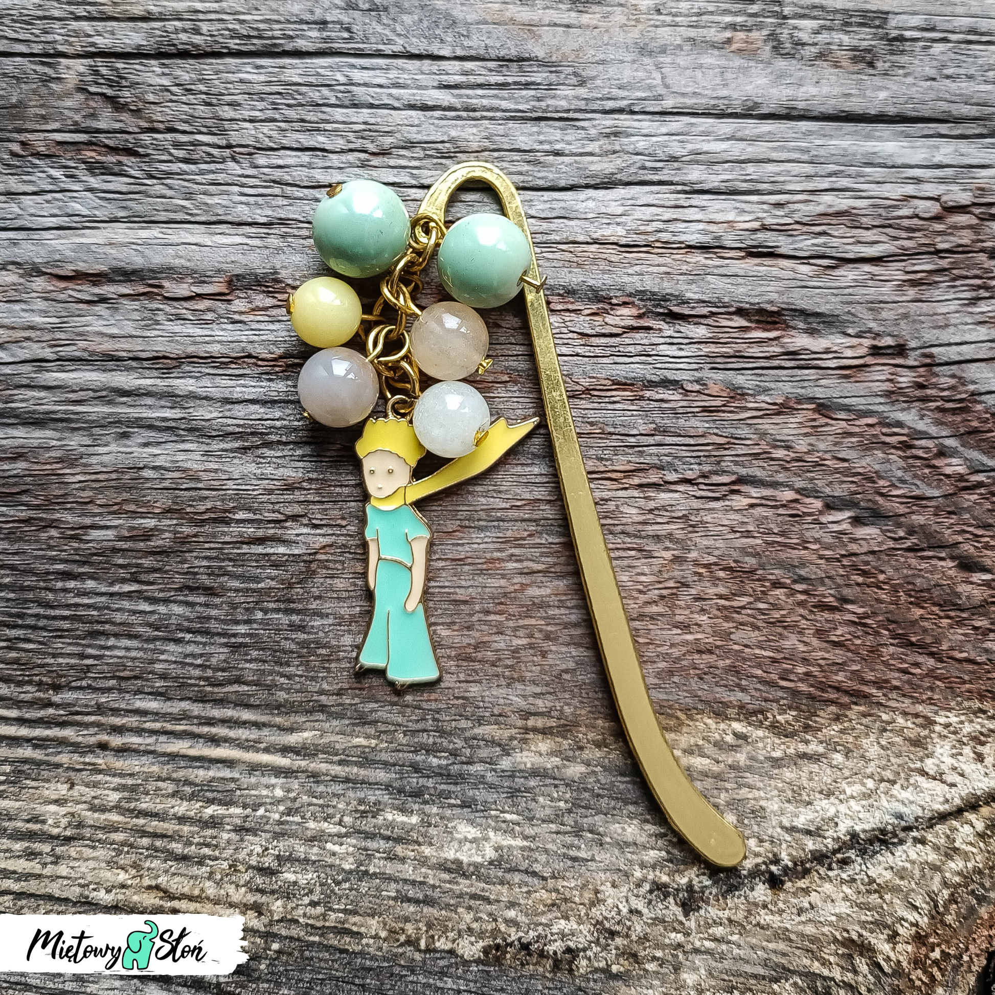 Metalowa zakładka do książki z kolorowymi koralikami i zawieszką MAŁY KSIĄŻĘ.